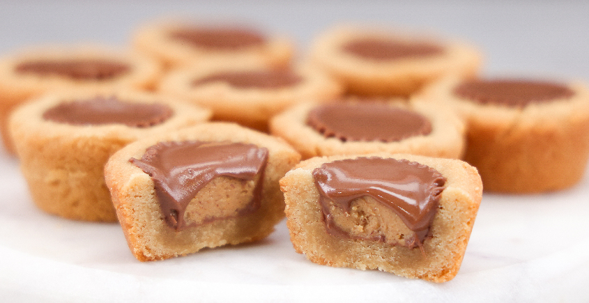 “JIFFY” Peanut Butter Cups made with “JIFFY” Pie Crust Mix are soft peanut butter cookies, wrapped around the chocolatey goodness of a peanut butter cup.