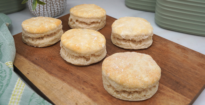 Rolled Biscuits made with “JIFFY” Buttermilk Biscuit Mix is the perfect baking powder style biscuit. Serve with sweet or savory toppings.